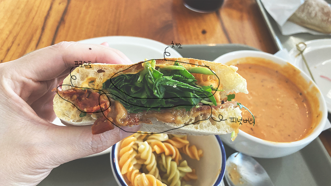 나는 좀 프레시한 맛으로 샌드위치를 먹는데