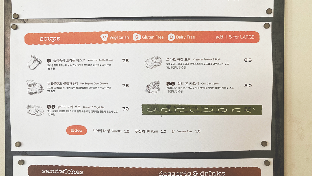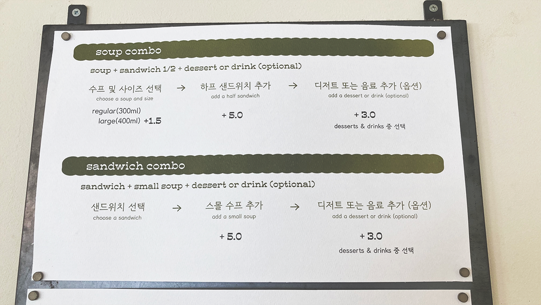 거긴 스프는 진짜 맛있는데 다른 메뉴가 그냥 쏘쏘하다!
