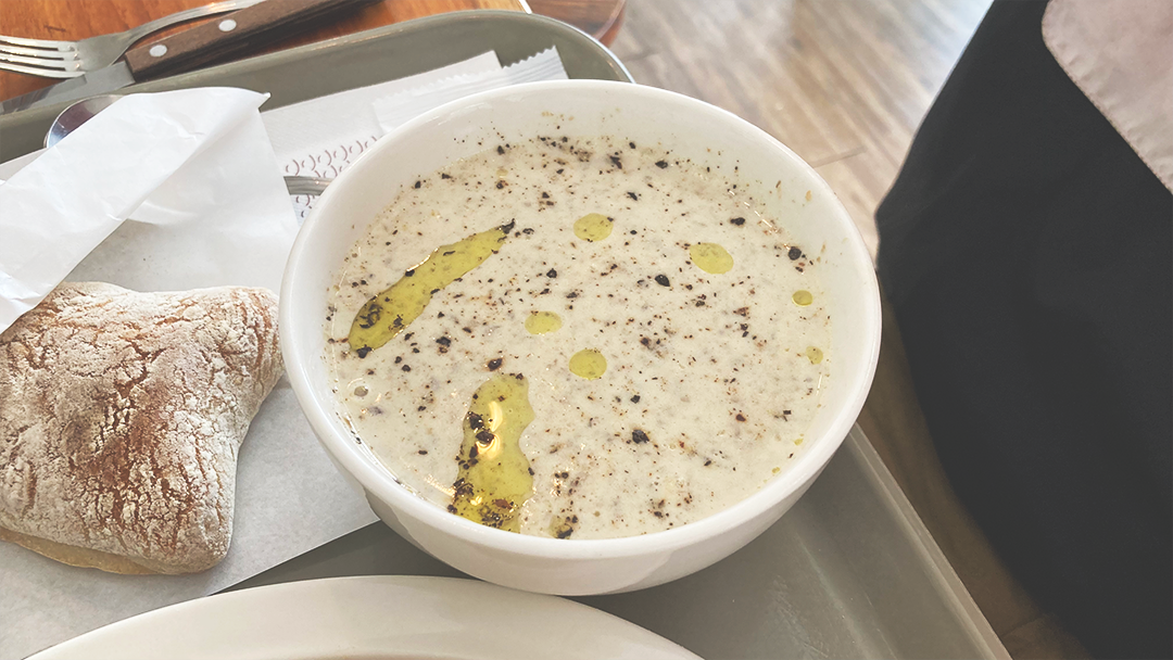 트러플 오일 + 버섯이 잔뜩 갈려 있는 크림스프!